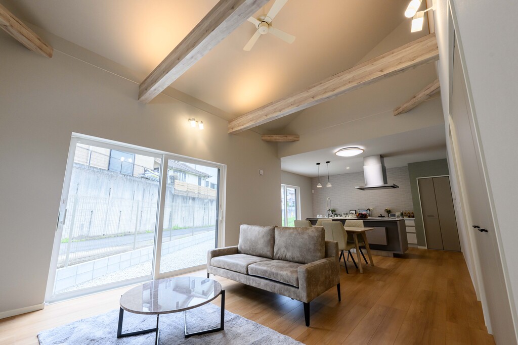 大きな窓から自然光がたっぷり入るリビングは、