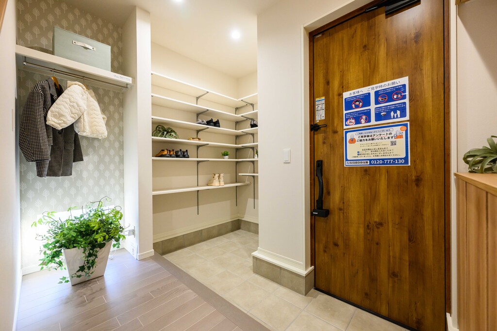 下駄箱+シューズクロークで玄関収納のたっぷりとっています。