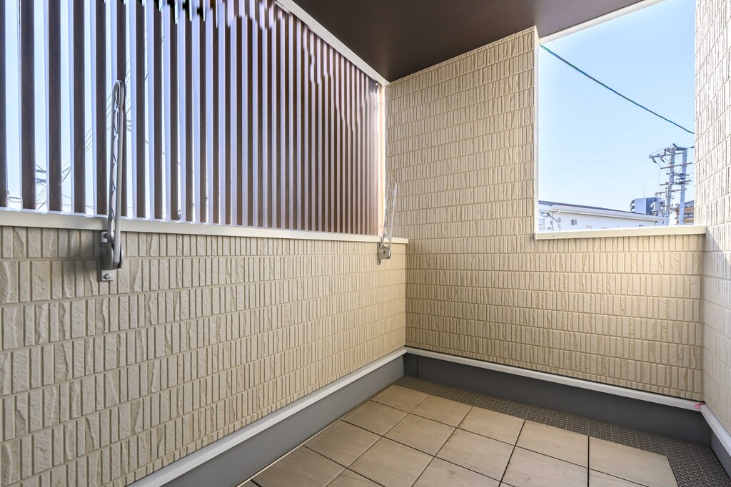 目隠し付きで、洗濯物やお子様のプール遊びも安心。椅子やテーブルを置ける広さがあり、休日のコーヒータイムや特別な朝食も楽しめる、贅沢なプライベート空間です。